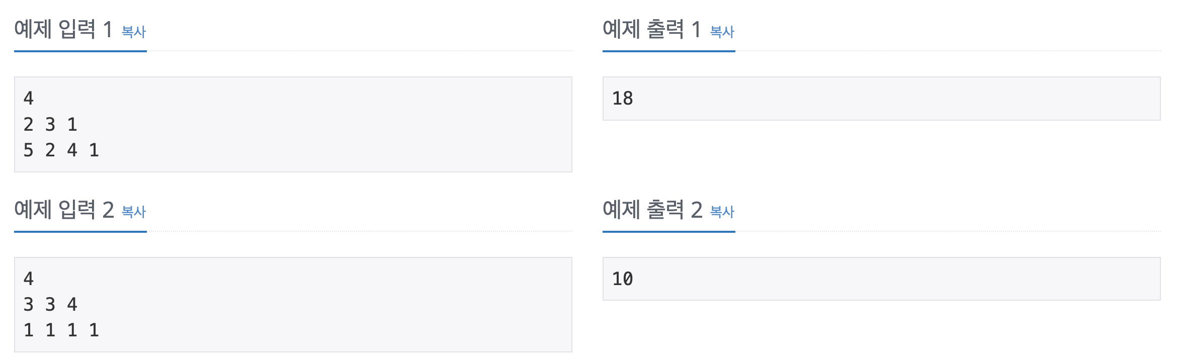 표준 입력으로 다음 정보가 주어진다. 첫 번째 줄에는 도시의 개수를 나타내는 정수 N(2 ≤ N ≤ 100,000)이 주어진다. 다음 줄에는 인접한 두 도시를 연결하는 도로의 길이가 제일 왼쪽 도로부터 N-1