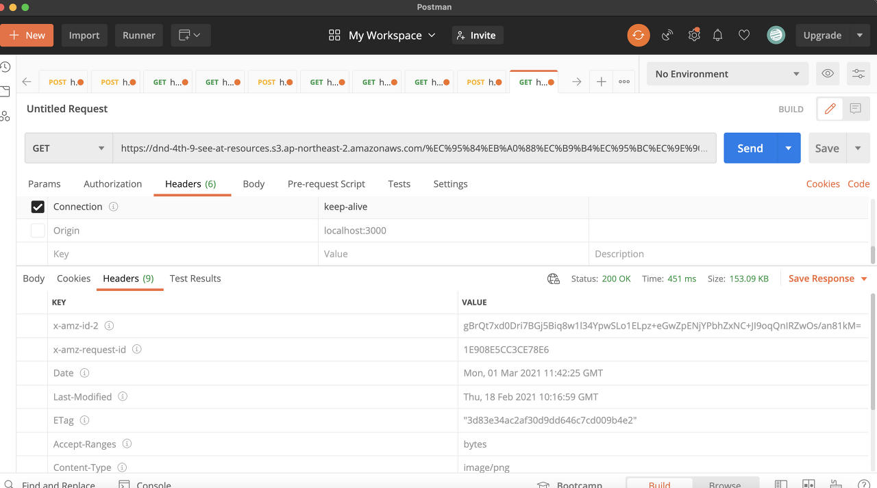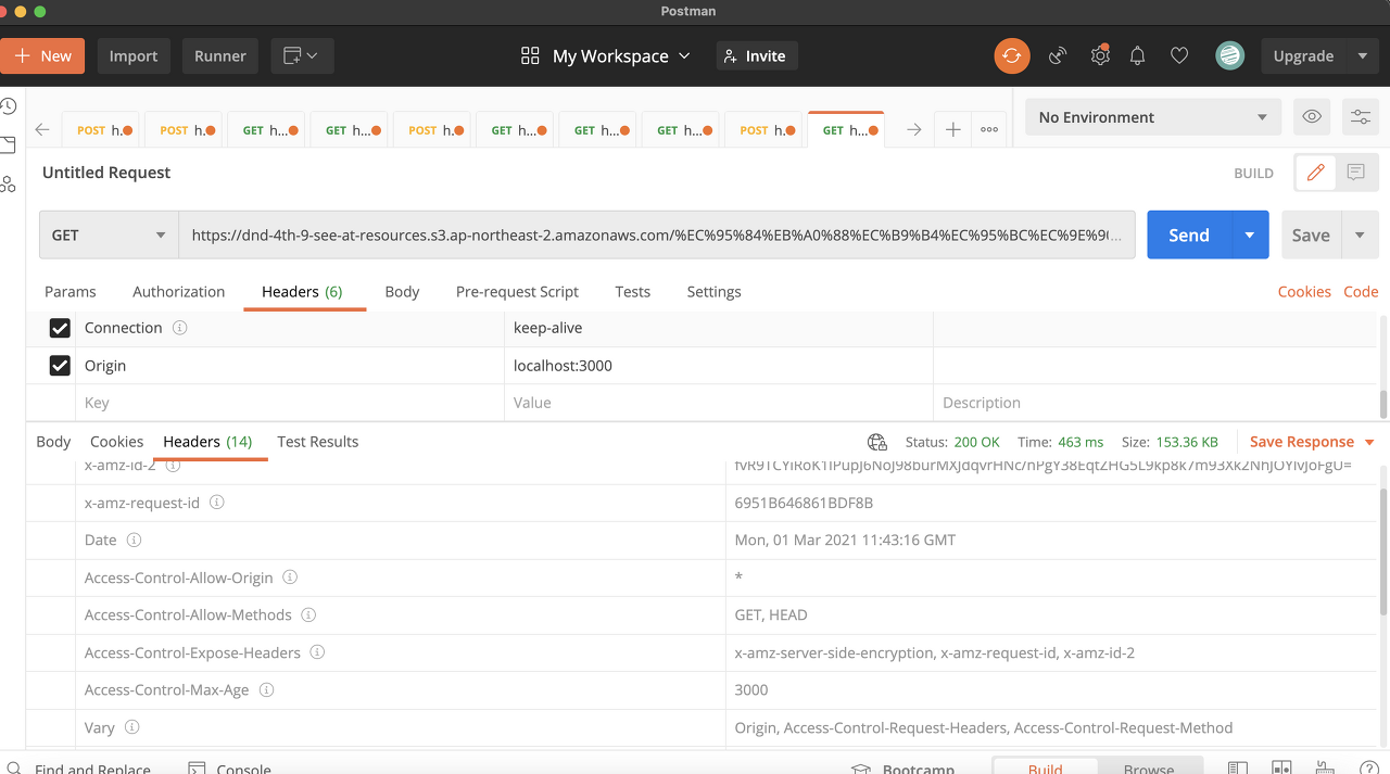 따라서 이제 클라이언트 측에서 Origin 헤더를 굳이 담아서 보내지 않더라도, S3를 Cloud front를 이용해 속여서(?) access-control-allow-origin 헤더를 받아 낼 수 있었다.
