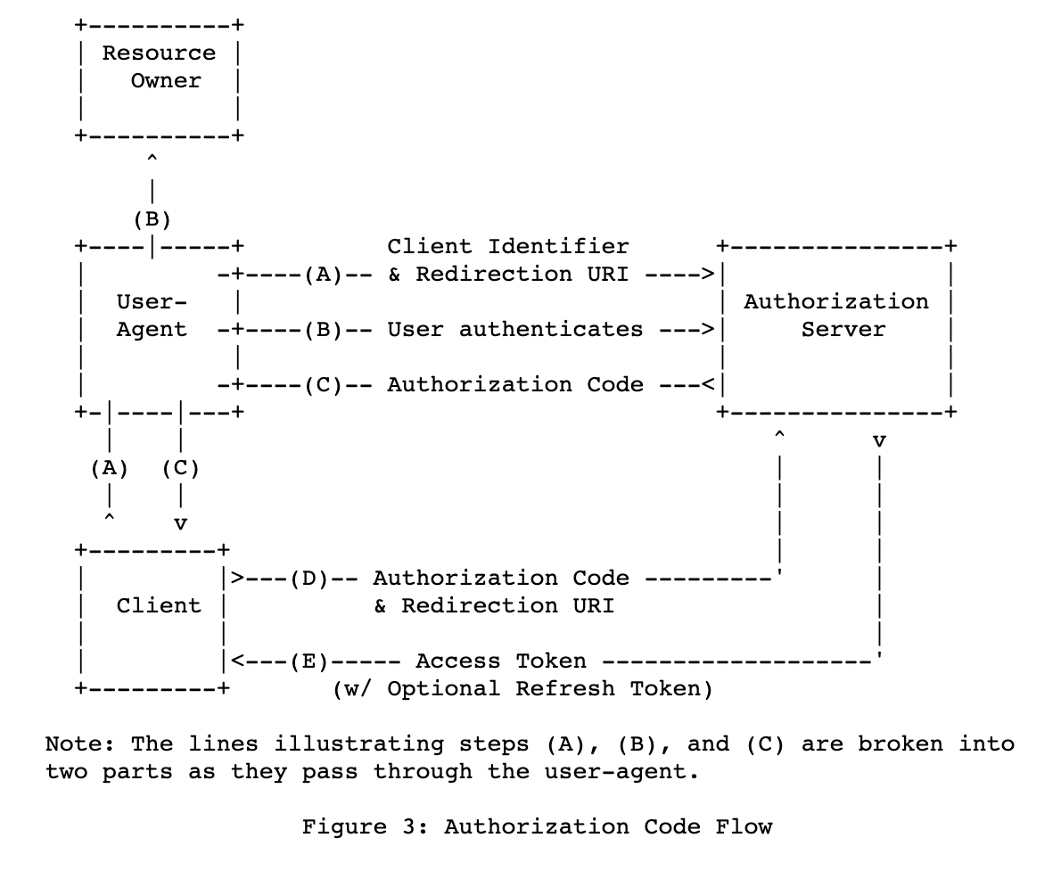 E. Client는 받아온 Access Token 을 이용하여 Resource Owner의 Resource에 접근을 요청한다